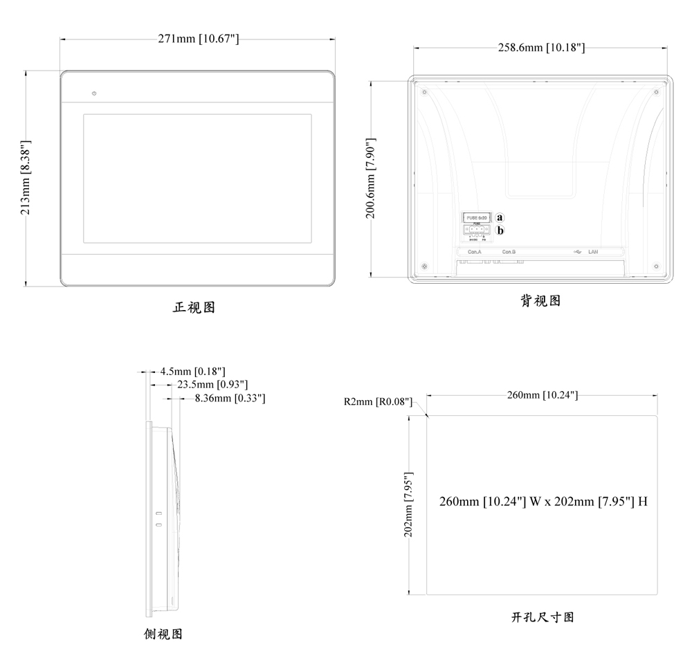 • 10.1" 1024 x 600 TFT LCD, LED背光燈